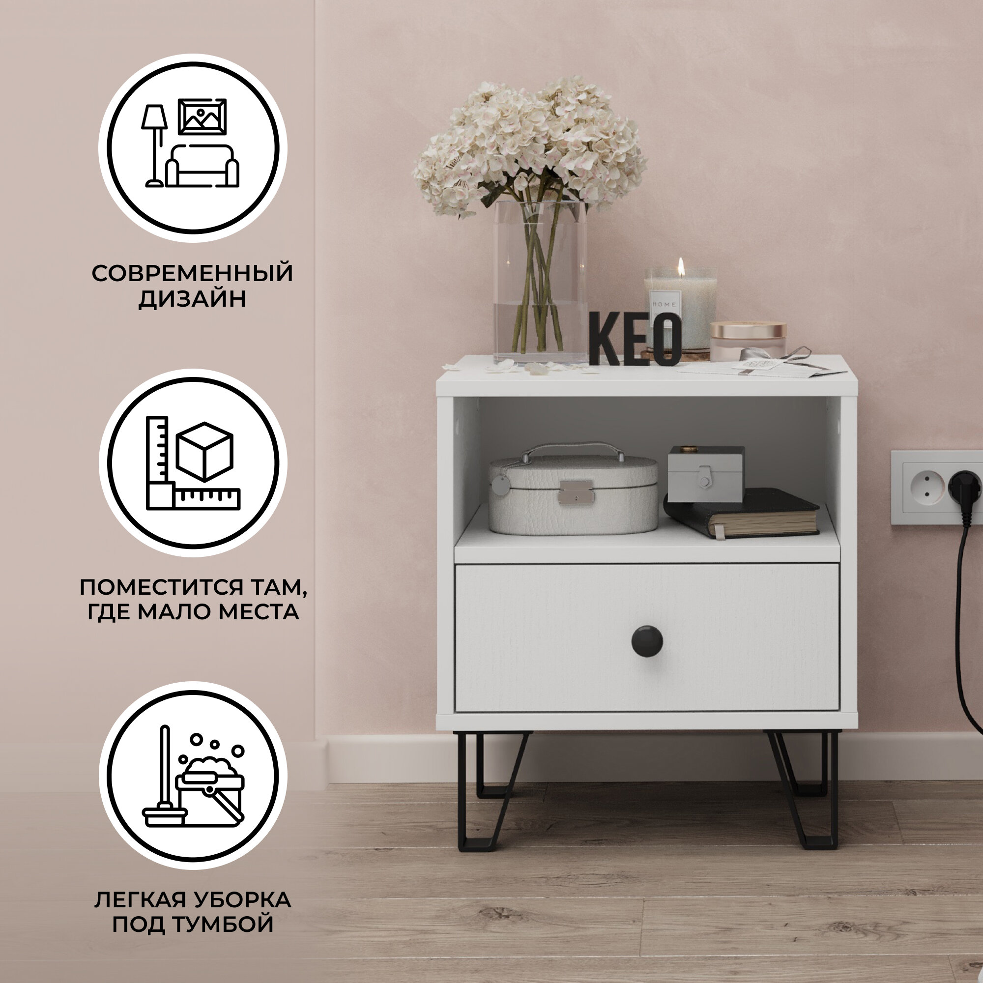 Тумбочка прикроватная Кео ТКР-278 белая с выдвижным ящиком 48х42х34 см информация: