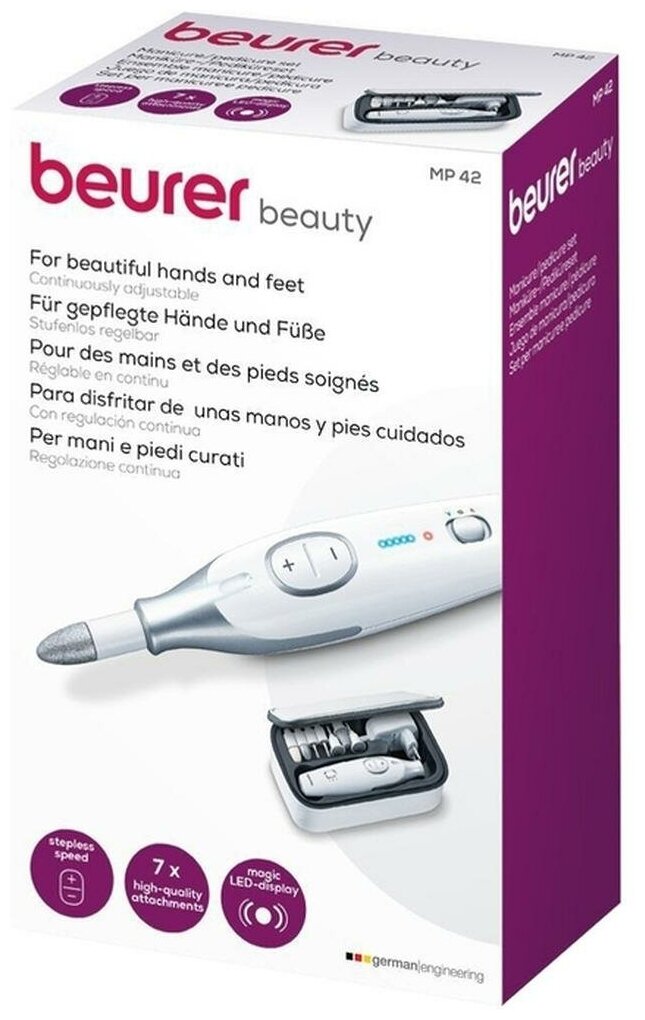 Набор для маникюра и педикюра с 7 насадками Beurer Mp42, белый .