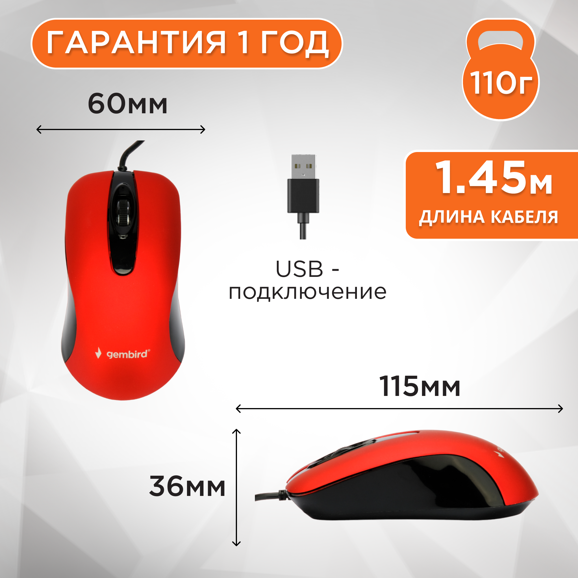 Проводная бесшумная мышь Gembird MOP-400-R информация: