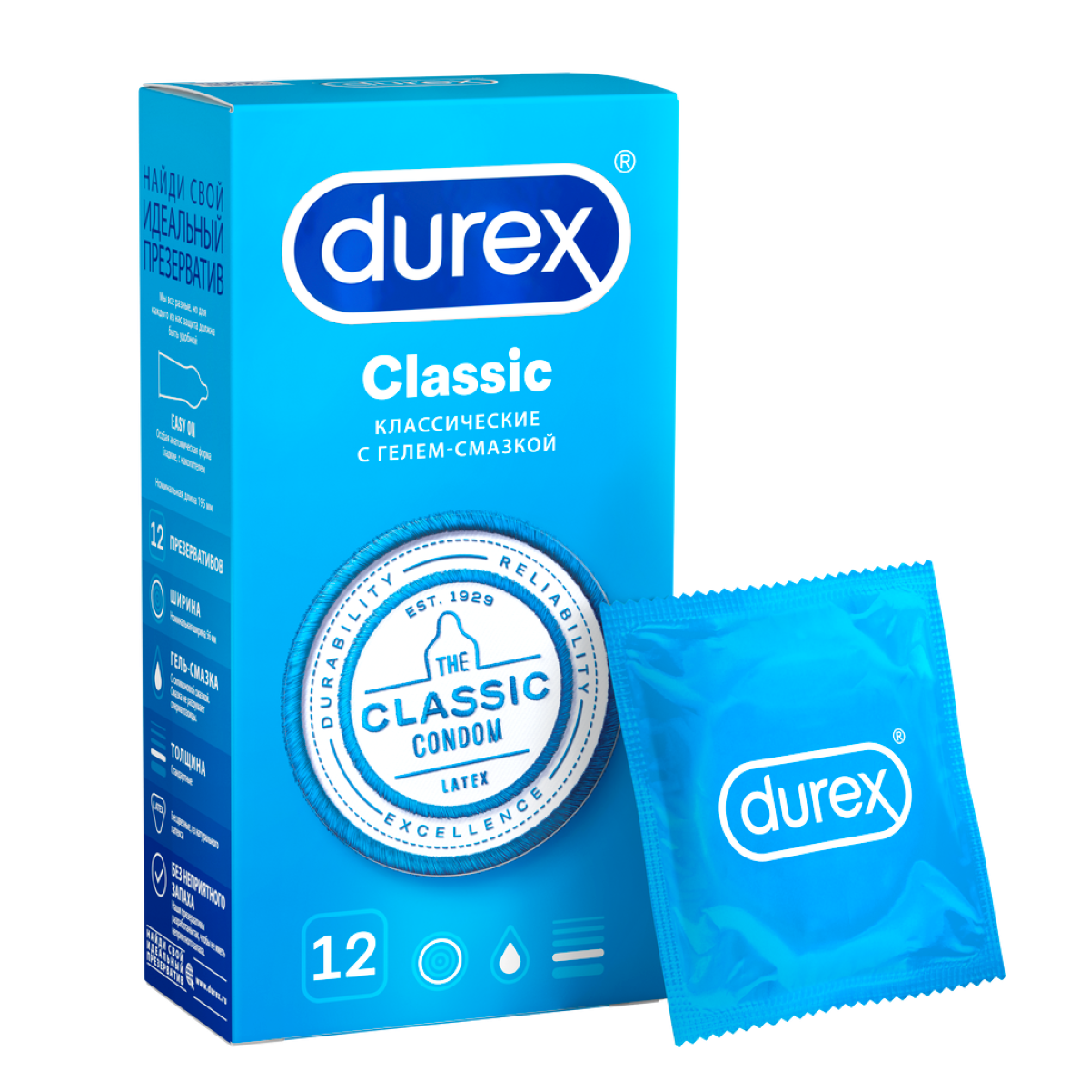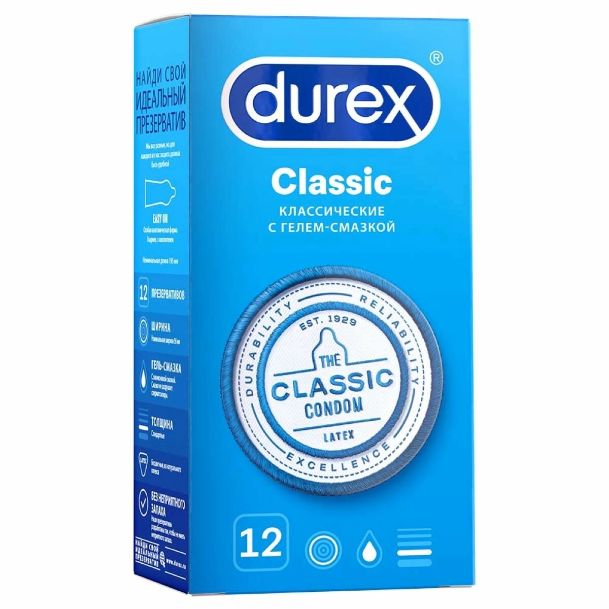 Durex Classic Презервативы с гелем-смазкой, 12 шт. 790 ₽
