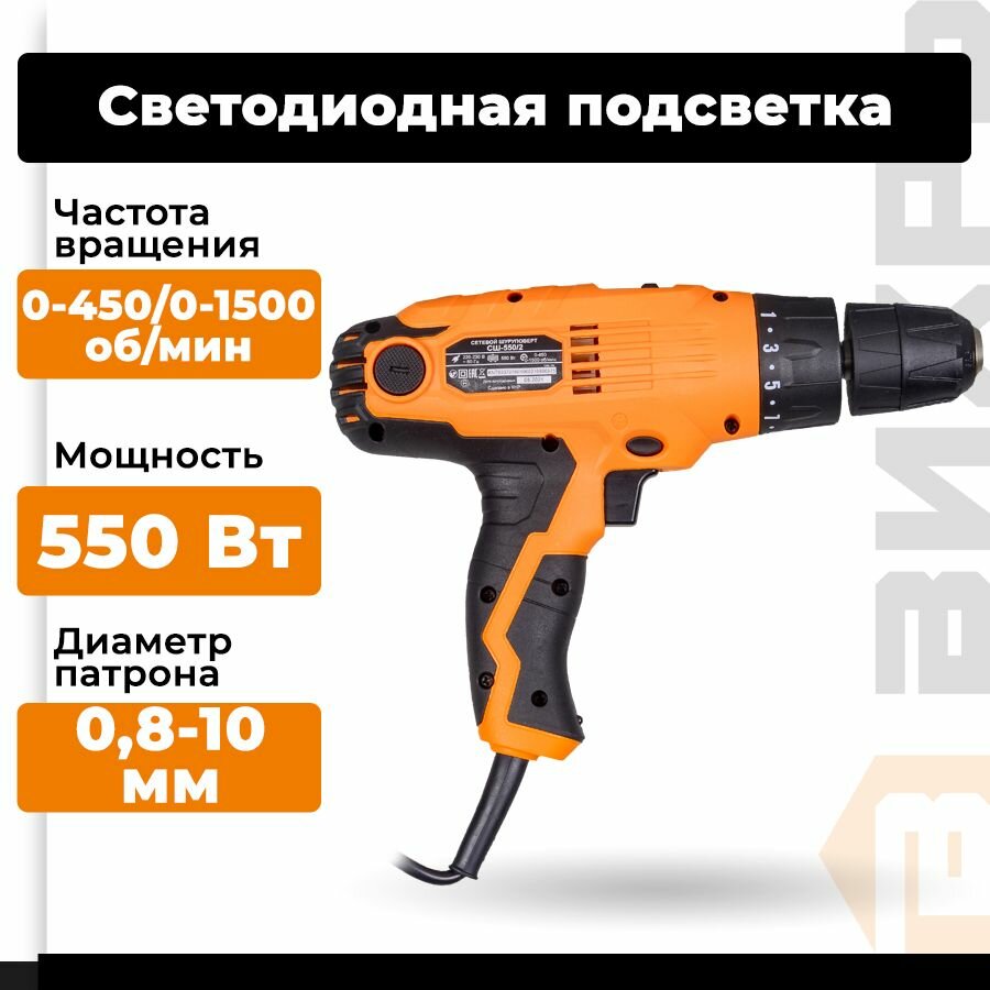 10 цен на Сетевой шуруповерт СШ-550/2 Вихрь, 550 Вт, 34Нм, патрон 0,8-10мм