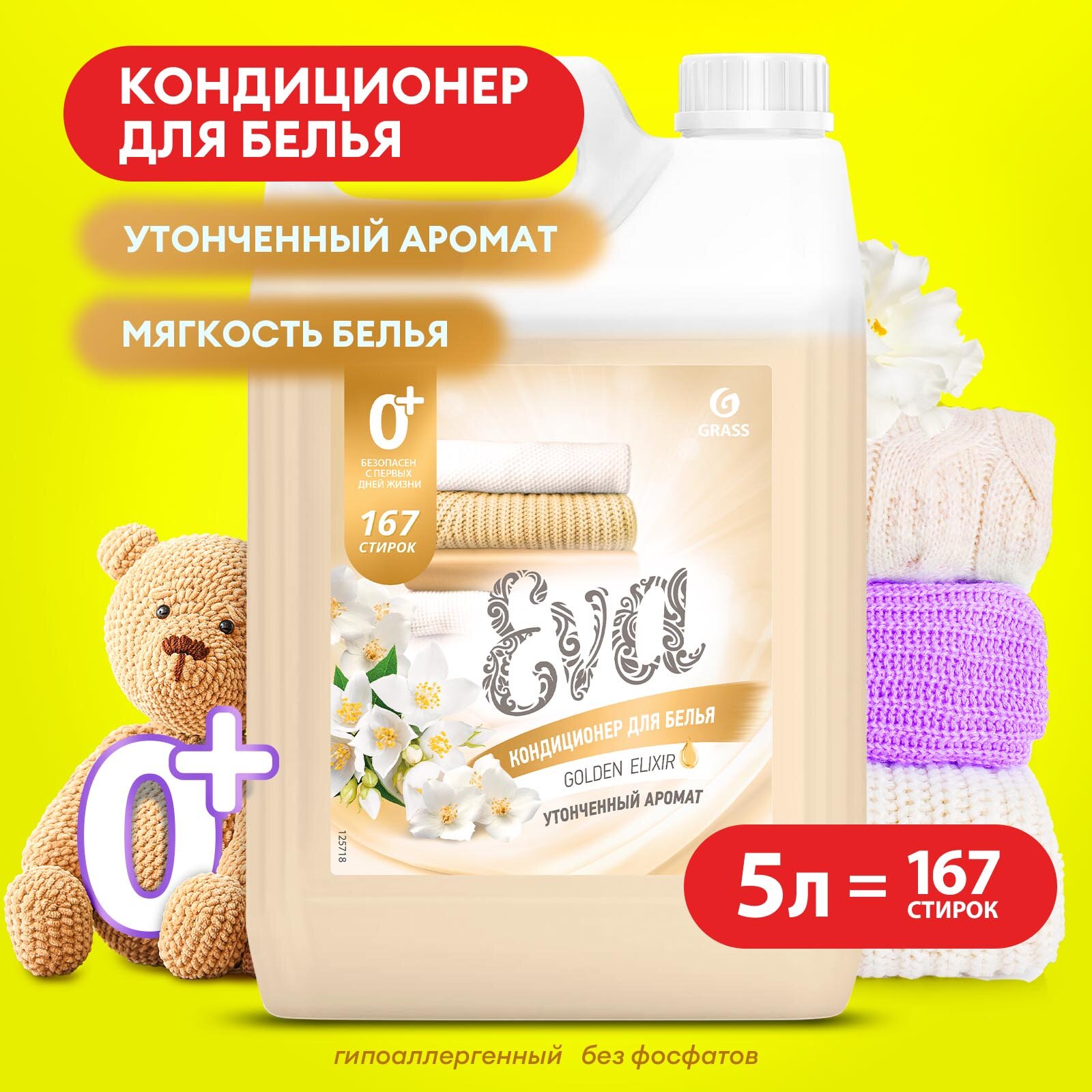 Кондиционер для белья концентрированный GRASS EVA Golden Elixir 5кг, 125718 1 202 ₽