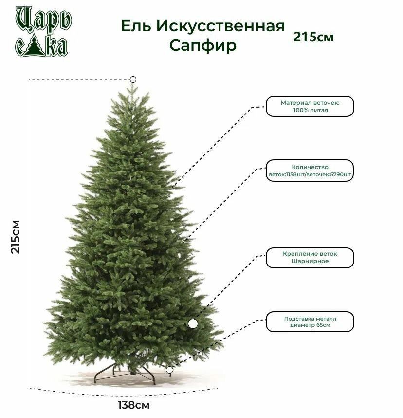 10 цен на ЕЕлка искусственная новогодняя Царь Елка Сапфир высота 215см, напольная 100% литая . Ель искусственная напольная