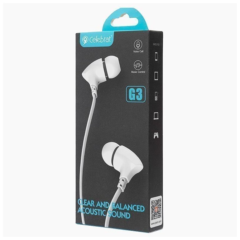 Наушники проводные с микрофоном Celebrat G3, MiniJack 3.5мм, 1.2 метра, белые информация:
