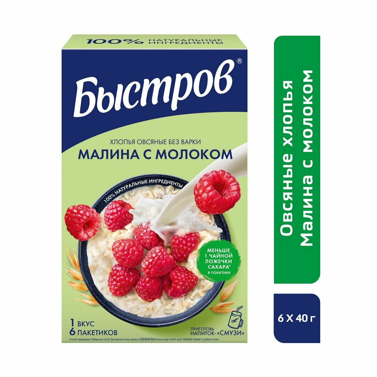 "Быстров" хлопья овсяные, не требующие варки, малина с молоком 240г 4шт информация: