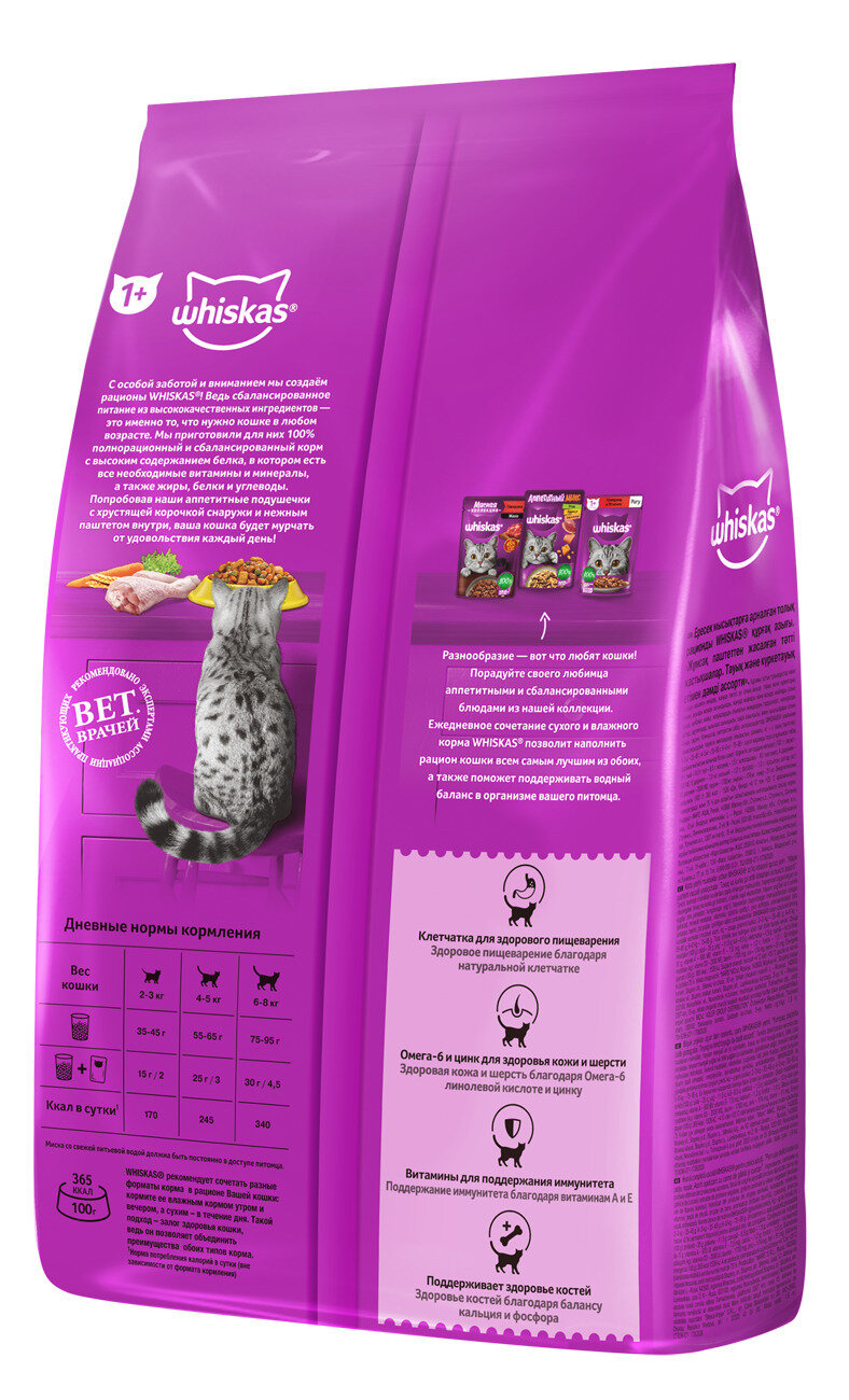 Сухой корм Whiskas для кошек, курица/индейка, подушечки, 5 кг информация: