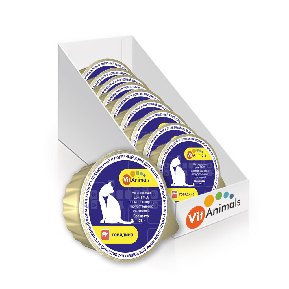 Отзывы на (цена за упаковку) 125г х 10шт консервы витэнималс для взрослых кошек говядина