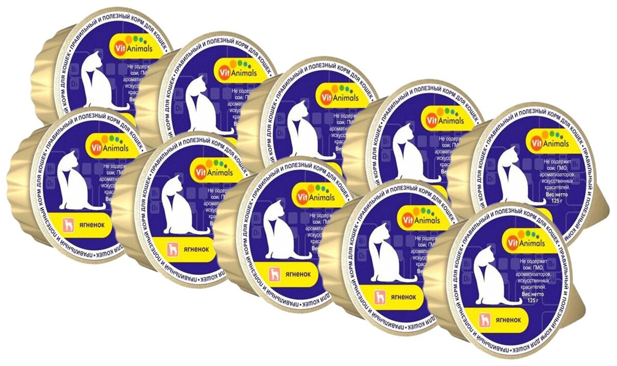 10 цен на Влажный корм VitAnimals для кошек Ягненок 125г (10 шт)