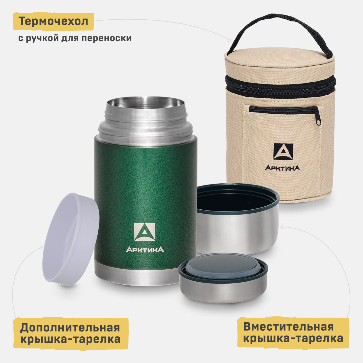 Термос Арктика для еды с широким горлом 0,8 л в чехле Зелёный 2 629 ₽