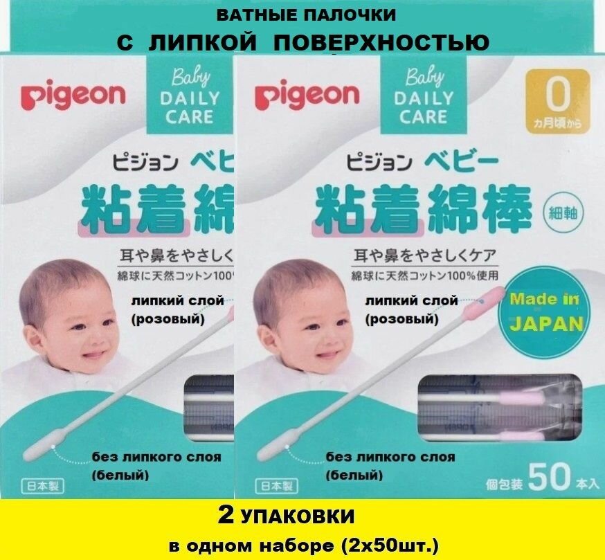 Ватные палочки Pigeon детские с липкой поверхностью (2х50шт) информация: