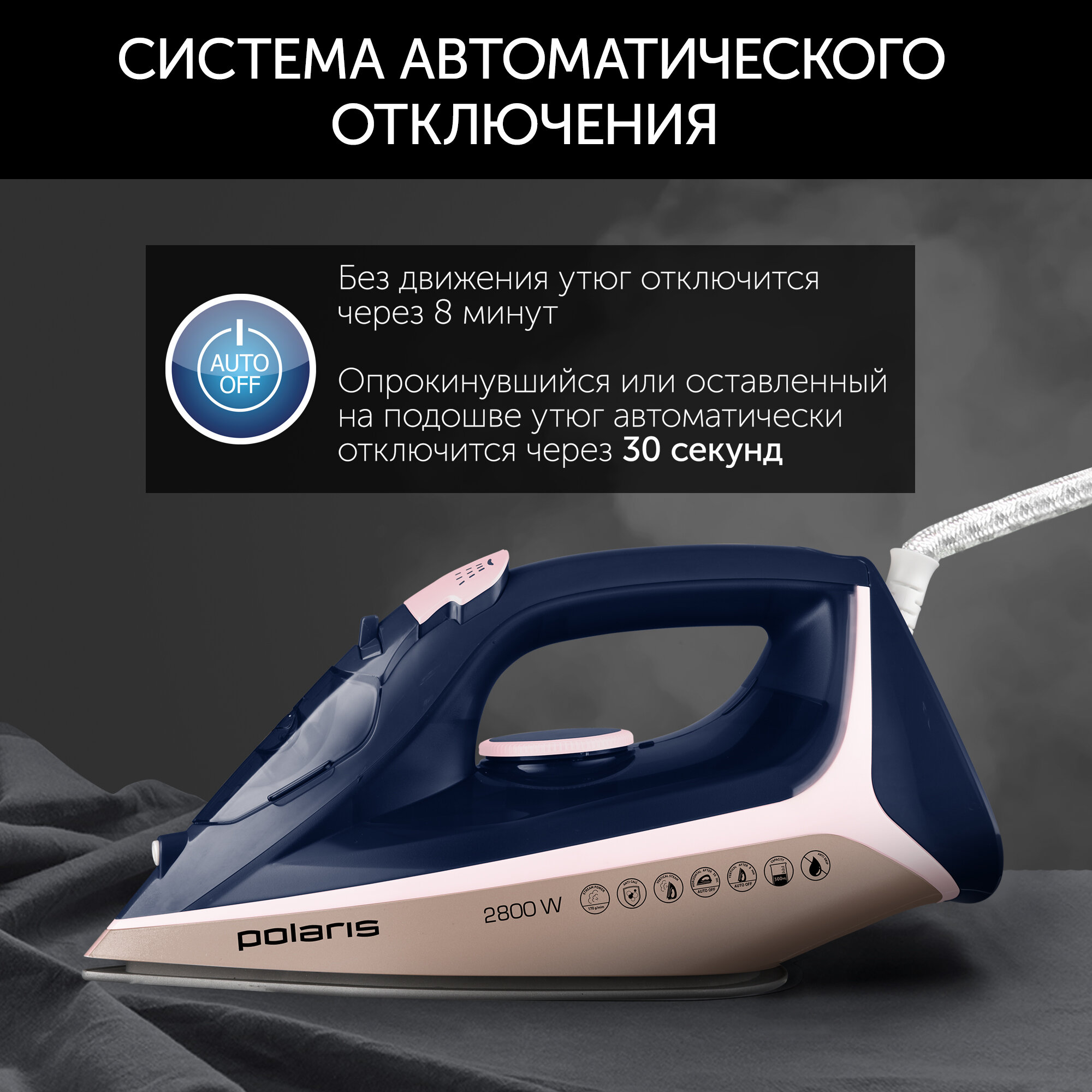 Утюг Polaris PIR 2868AK 3m для одежды с вертикальным отпариванием, паровой удар до 170 г/мин, синий/розовый информация: