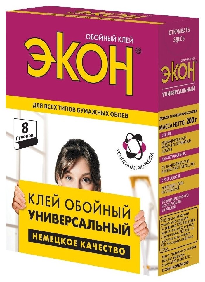 Клей для всех видов бумажных обоев Экон Универсальный 200 г информация: