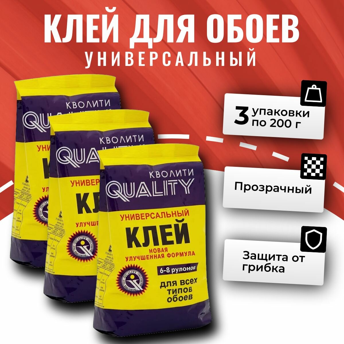 Клей для обоев QUALITY ЭТО высокое качество, универсальный, 200 г., 3 шт. информация:
