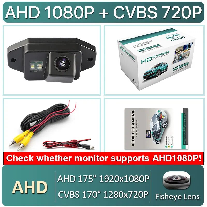 170 градусов AHD 1920x108 0P ночное видение автомобильный номерной знак свет камера заднего вида для Toyota Prado Land Cruiser 120 2007-2011, AHD1080P-175Degree информация: