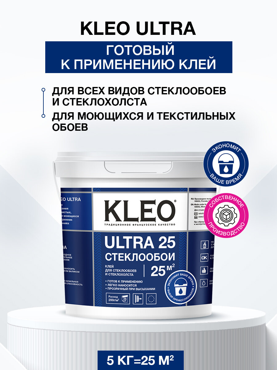 Клей для стеклообоев готовый KLEO ULTRA ведро 5кг, 25 кв.м. информация: