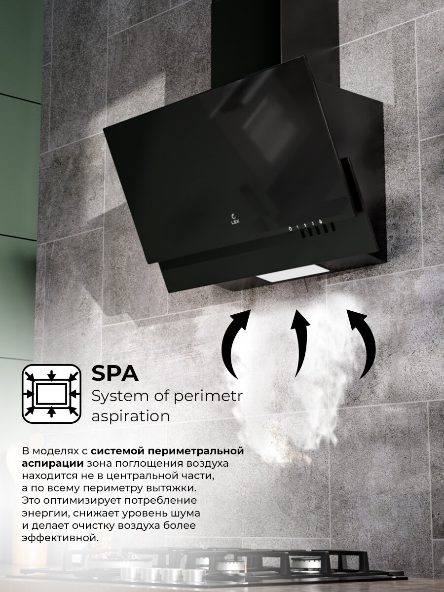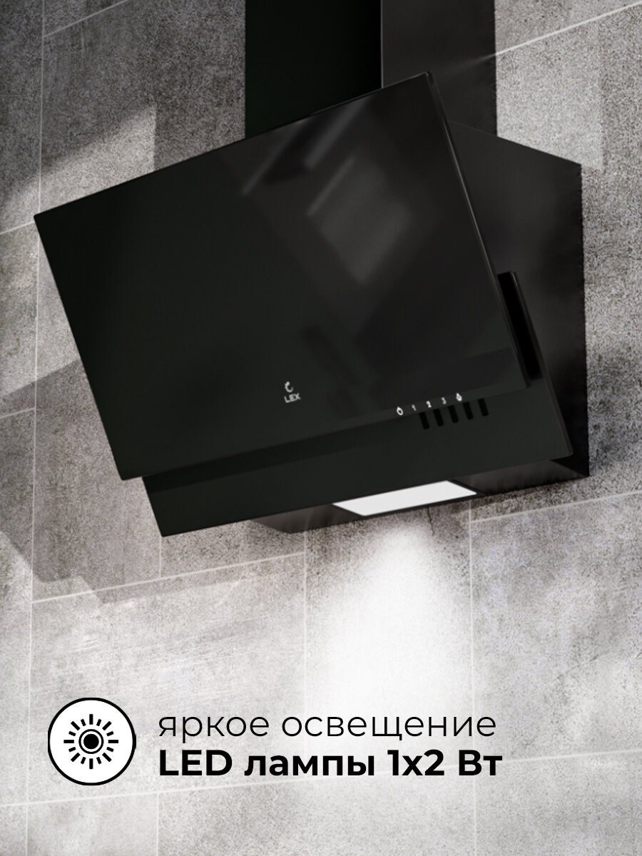 Отзывы на Наклонная кухонная вытяжка LEX MERA 500 BLACK, 50см,отделка: стекло, кнопочное управление, LED лампы, черный.