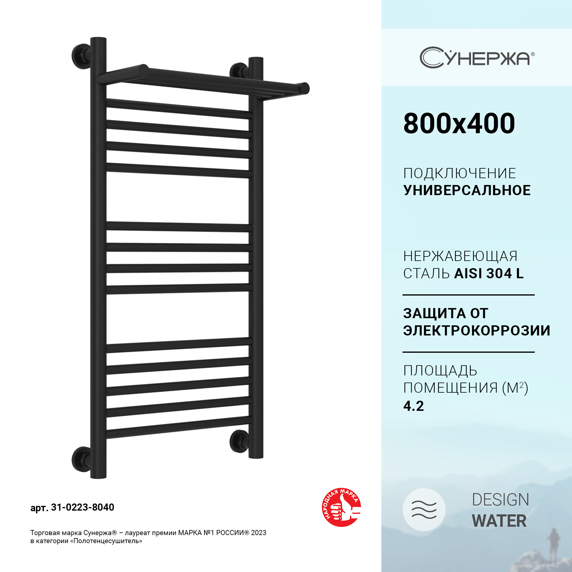 Водяной полотенцесушитель Сунержа Богема с полкой+ 800x400 матовый черный арт. 31-0223-8040