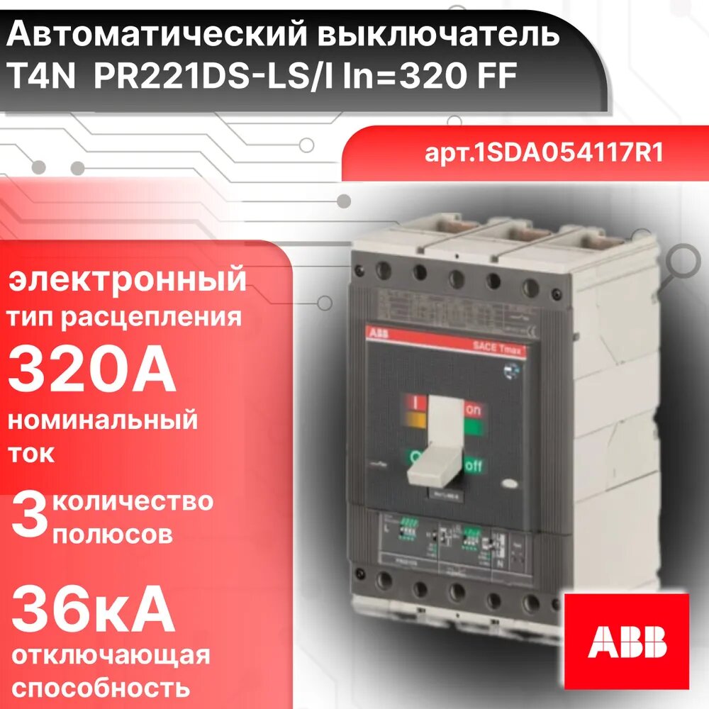 Выключатель автоматический T4N 320 PR221DS-LS/I In=320 3p F F, ABB 1SDA054117R1 (1 шт.)