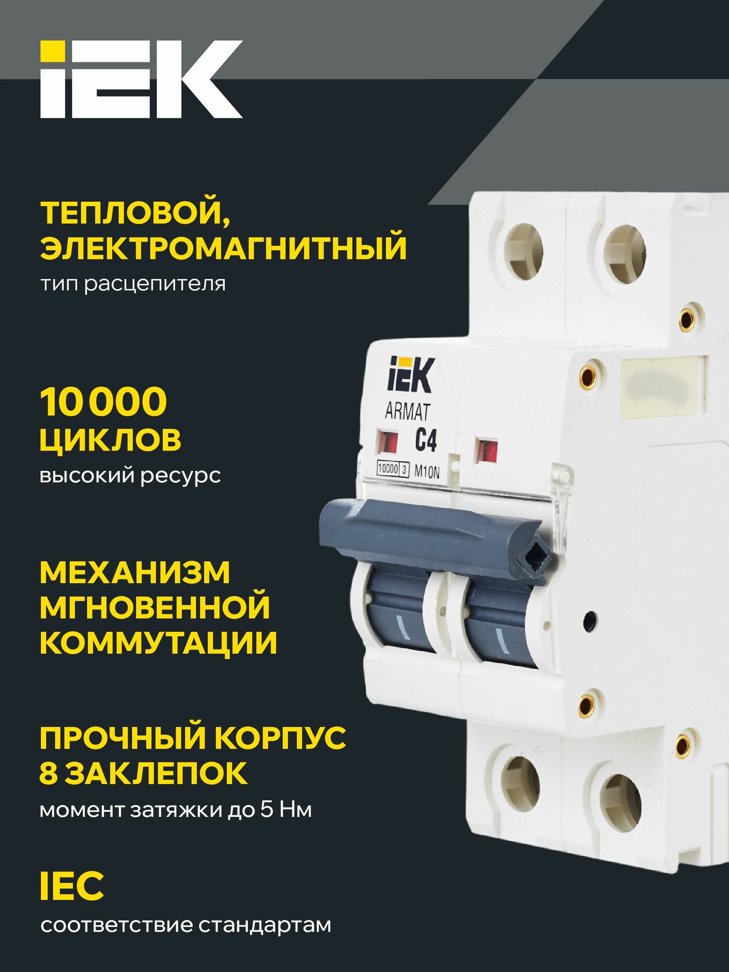ARMAT Выключатель автоматический двухполюсный C 4А M10N , IEK AR-M10N-2-C004 (1 шт.) информация: