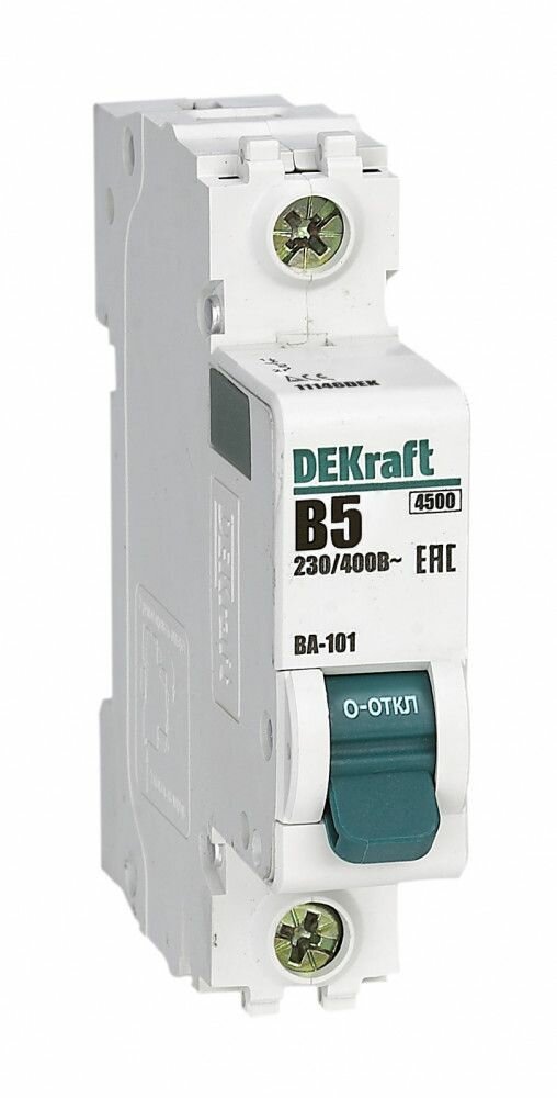 ВА-101 Автоматический выключатель 1-полюсный, 5А, 4.5kА (хар-ка В) DEKraft, 11146DEK информация: