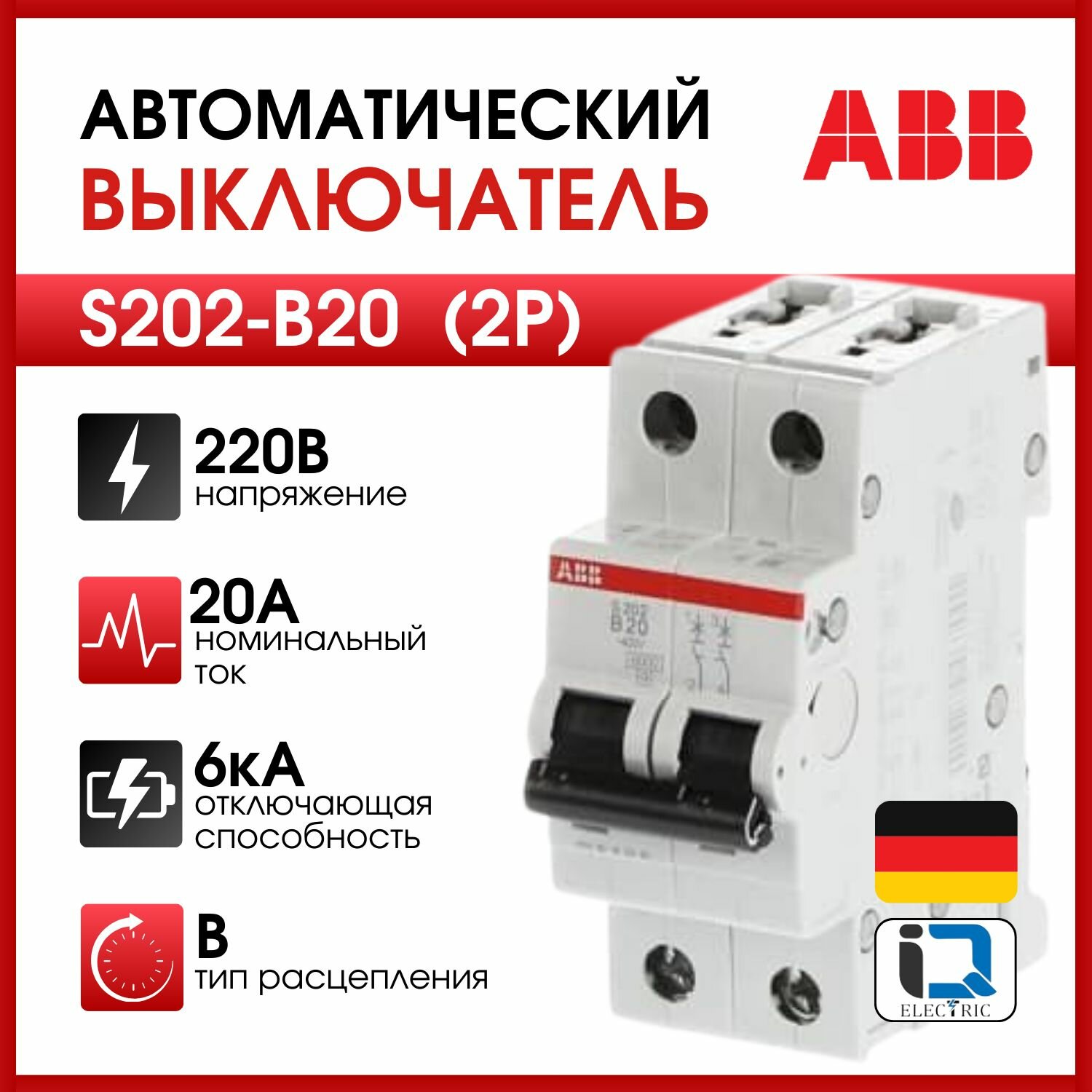 Автоматический выключатель ABB S202 B20 2П 6кА 2CDS252001R0205 информация:
