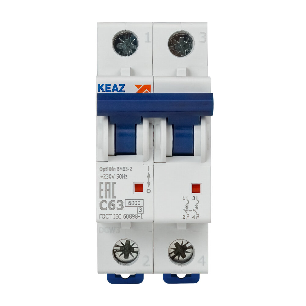 Выключатель автоматический модульный 2п C 63А 6кА OptiDin BM63-2C63-УХЛ3 | код 260610 | КЭАЗ (1 шт.)
