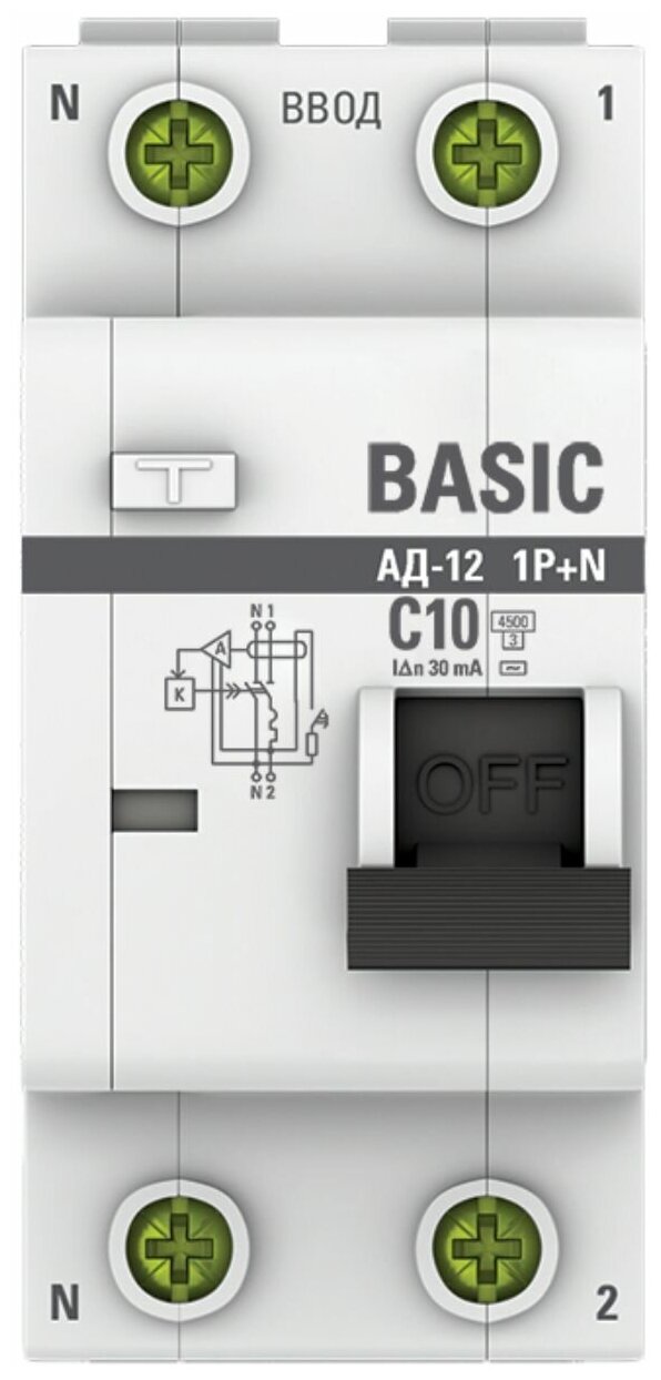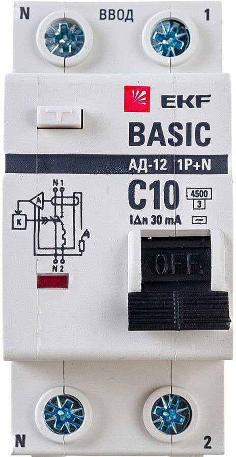 DA12-10-30-bas Дифференциальный автоматический выключатель EKF АД-12 Basic 1П+N 10А 30мА, тип AC, 4.5кА, C
