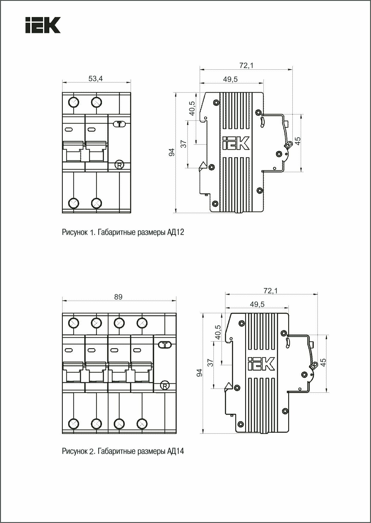 MAD10-4-050-C-030 Дифференциальный автоматический выключатель IEK АД14 4П 50А 30мА, тип AC, 4.5кА, C 2 004 ₽