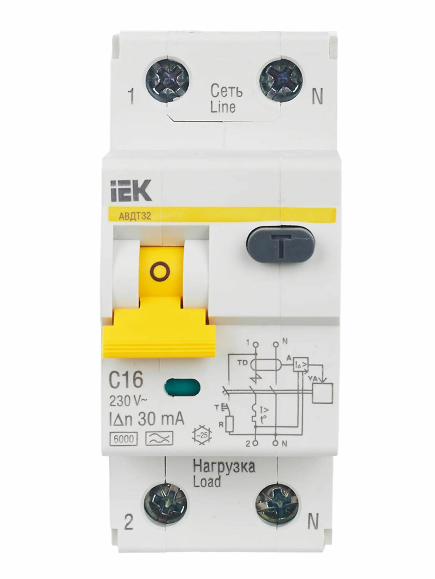 Дифференциальный автомат IEK АВДТ32 2П 30 мА C 6 кА A электронный 25 А 30 мА