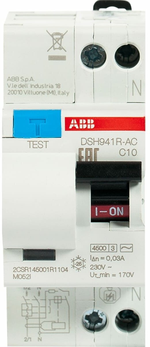 10 цен на Дифф. автомат (АВДТ) 2-пол. (1P+N) 10A C 30мА тип АC 4,5кА ABB