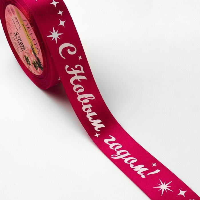 Новый год! Лента атласная «С Новым годом!», 25 мм, 23 ± 1 м, цвет красный (комплект из 8 шт) информация:
