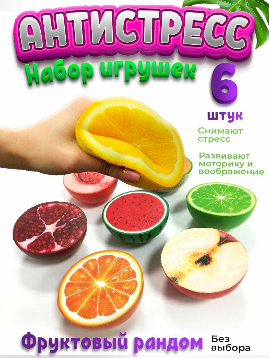 10 цен на Набор игрушек антистресс Сквиш, фрукты 6 шт (150332)