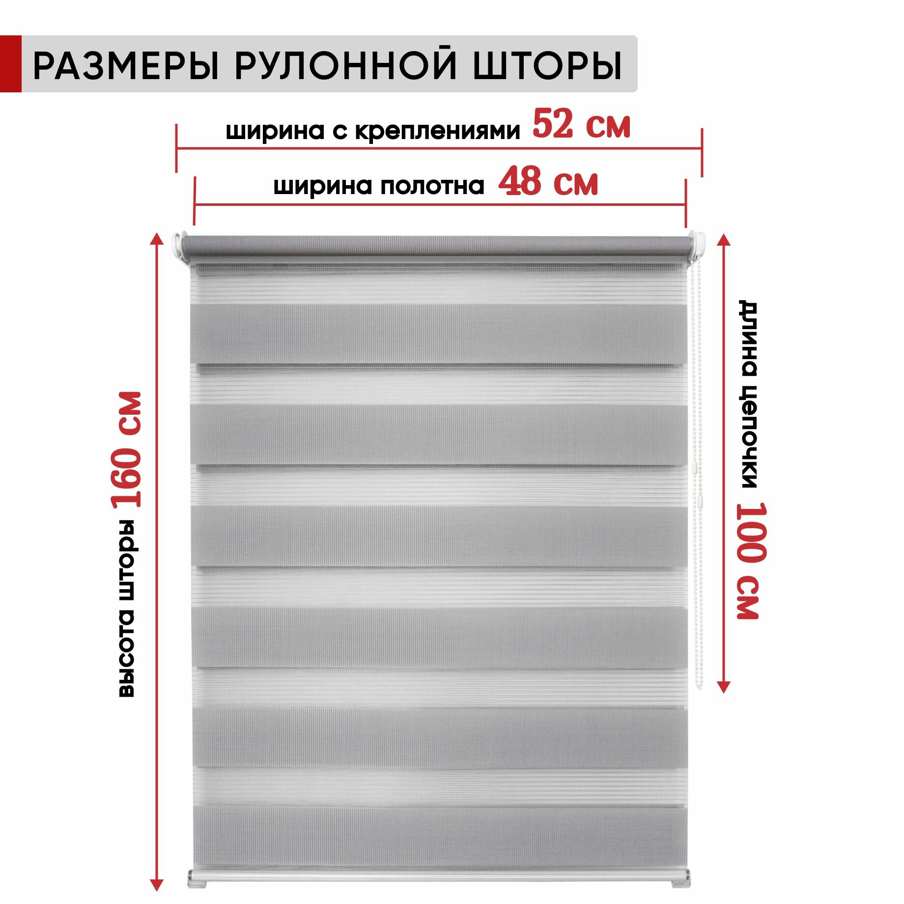 Рулонная штора УЮТ день ночь 050х160 см Канзас светло-серый, рольштора полиэстер, затемнение 60%