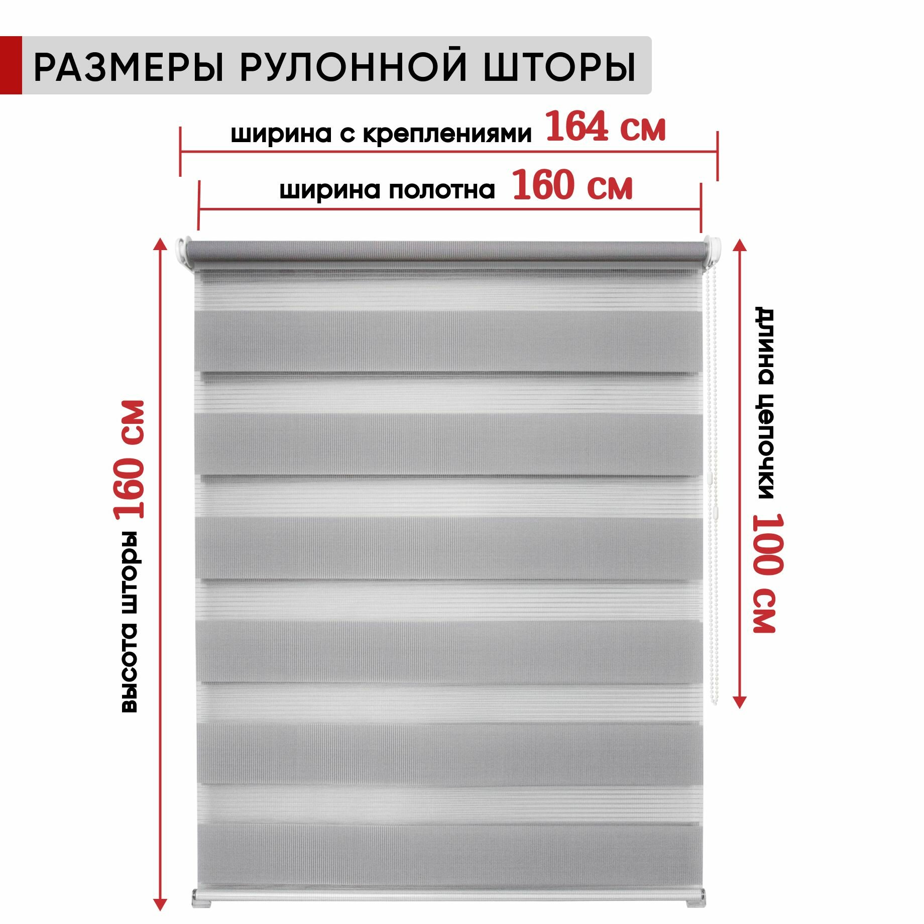 Рулонная штора УЮТ день ночь 160 смх160 см Канзас светло-серый, рольштора полиэстер, затемнение 60% 5 723 ₽