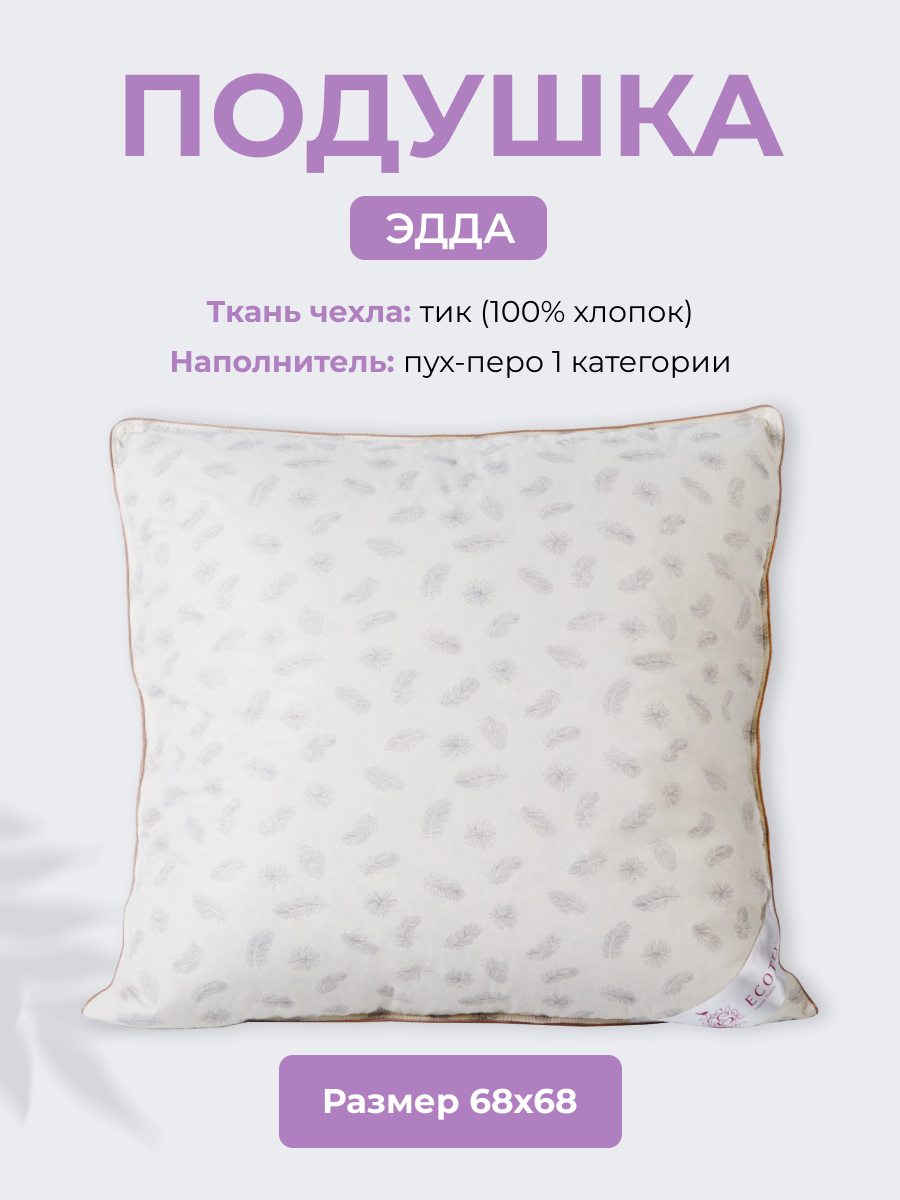 Отзывы на Подушка пух 70x70 см "Эдда", чехол - тик (100% хлопок), Ecotex