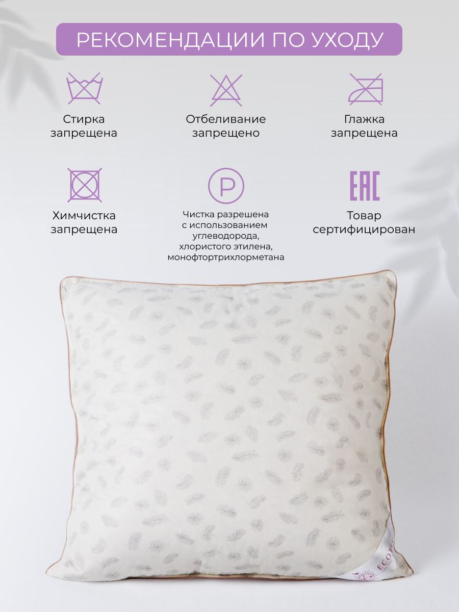 Подушка Ecotex Эдда пуховая, 68x68, для наволочек 70x70, пух первой категории ЭПП77