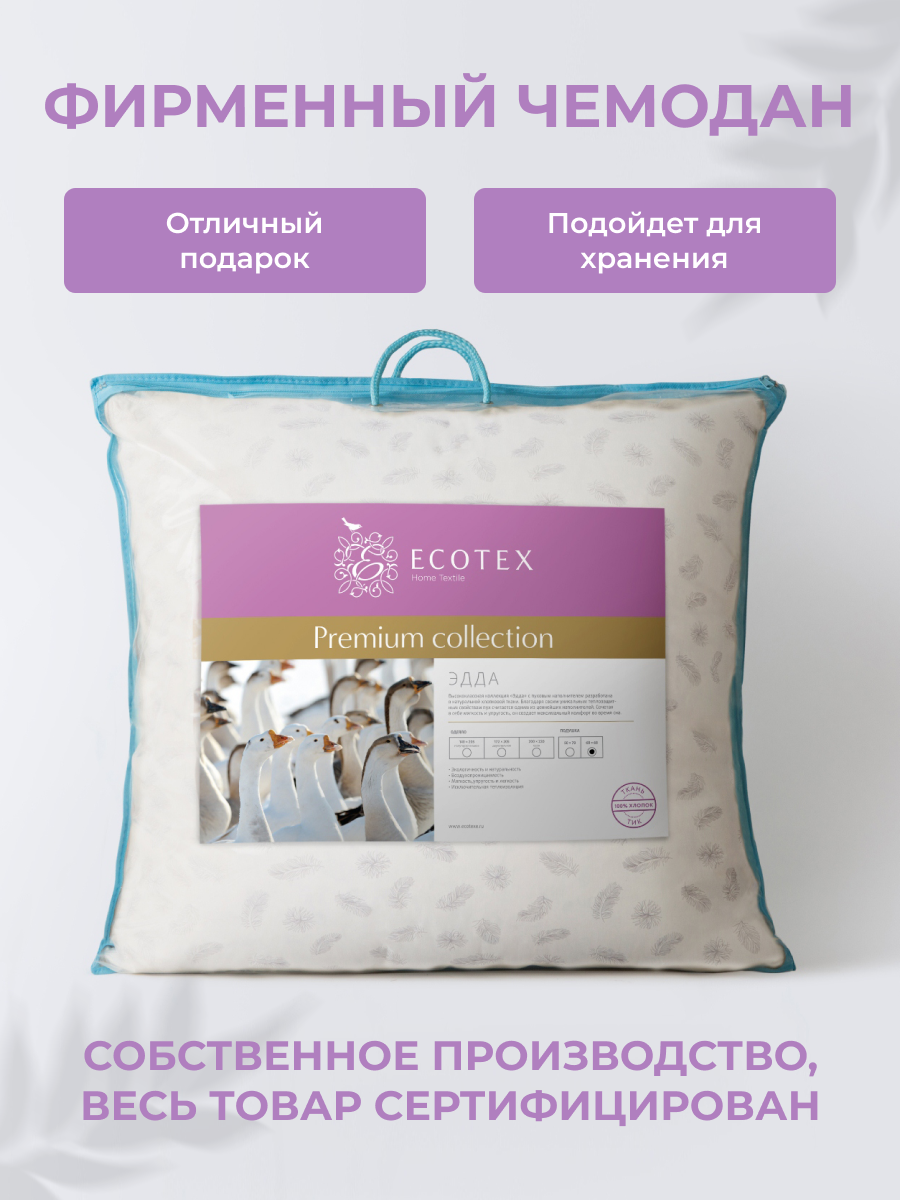 Подушка пух 70x70 см "Эдда", чехол - тик (100% хлопок), Ecotex информация: