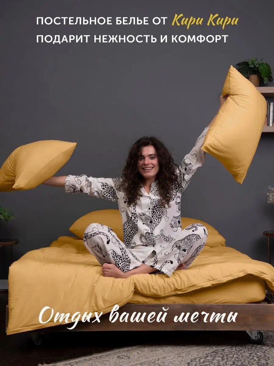 Пододеяльник 1.5 спальный KUPU-KUPU трикотажный на молнии 140х205 см, горчичный