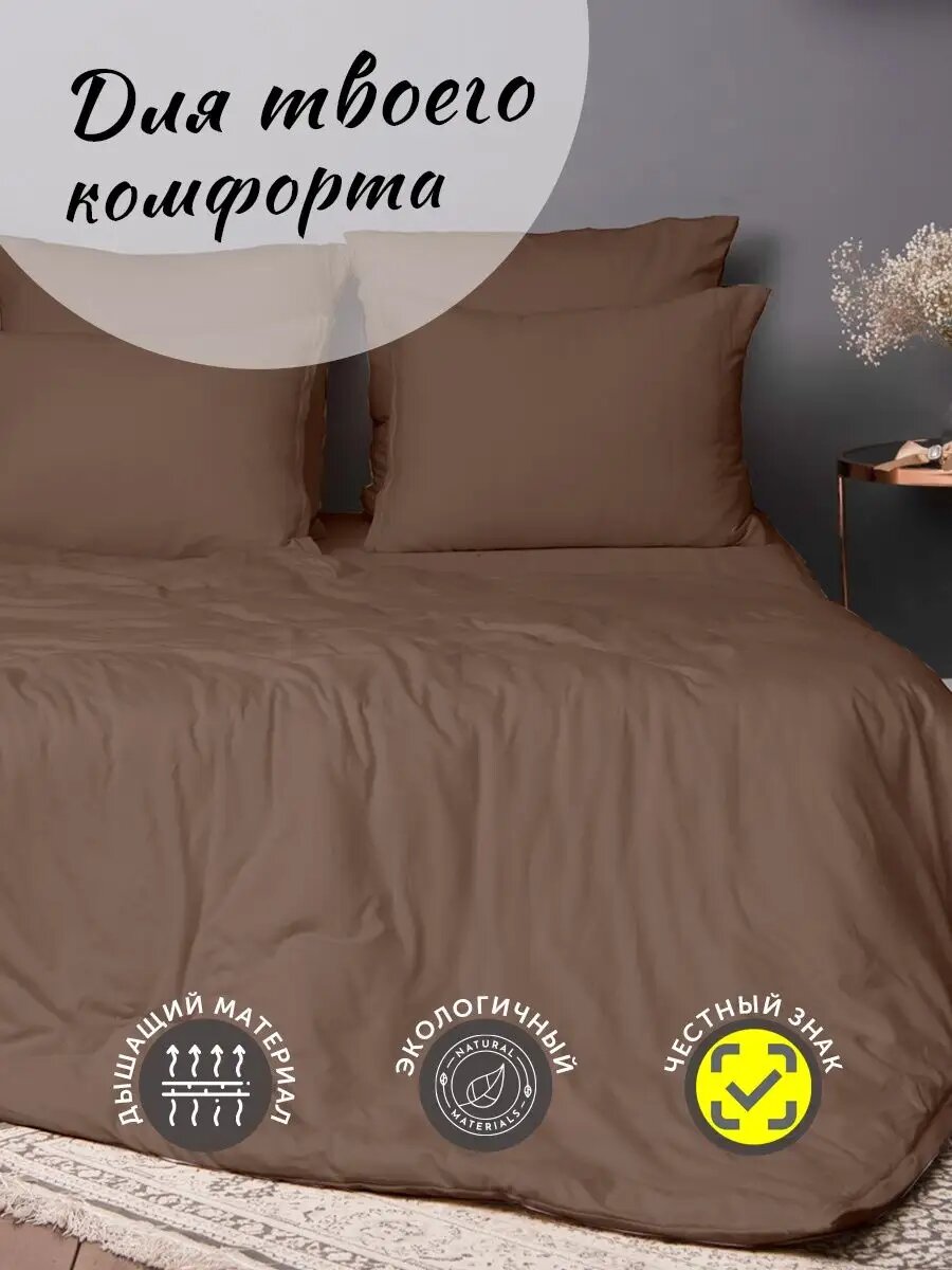 Пододеяльник 2 спальный KUPU-KUPU трикотажный на молнии 172х205 см, мокко