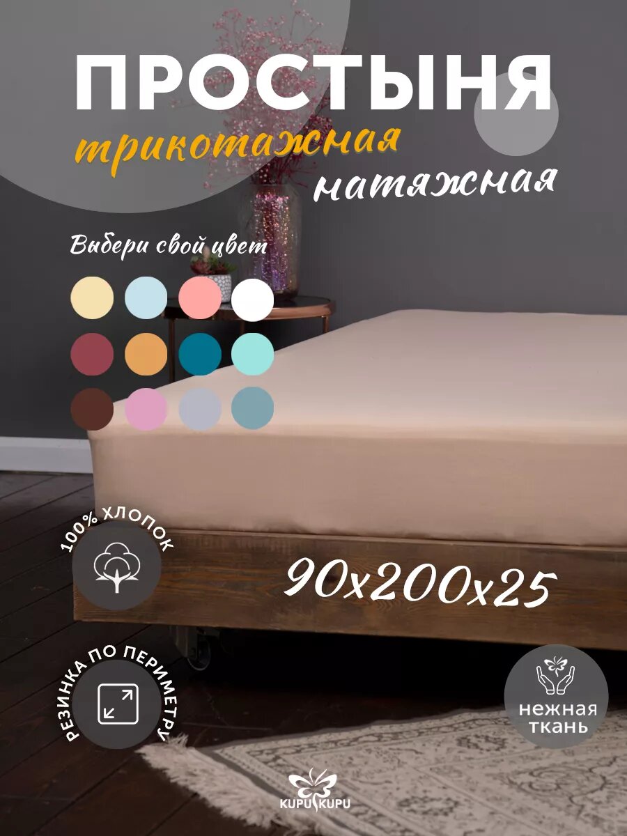 Отзывы на Простыня на резинке Kupu-kupu VIOLETT трикотажная, бежевый 90x200х25