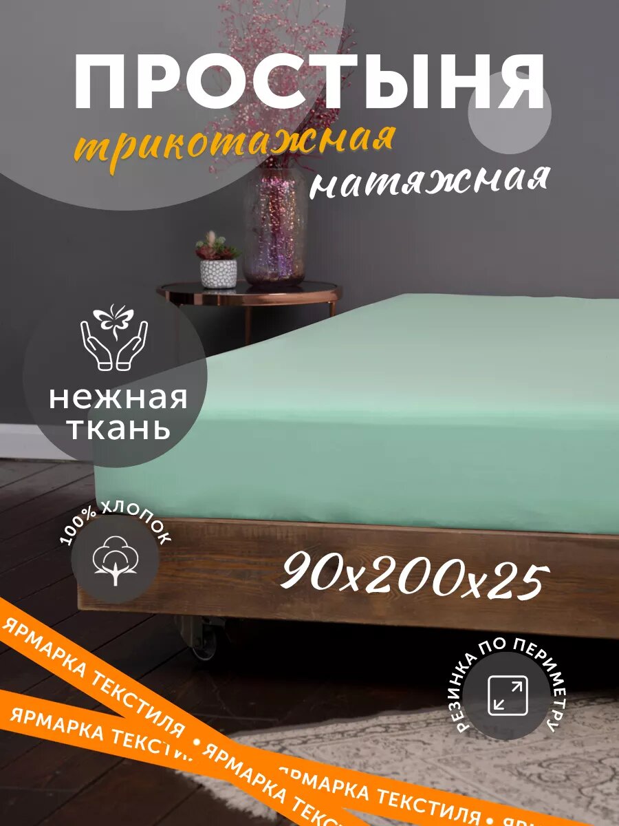 Простынь на резинке трикотажная 90х200 натяжная 905 ₽