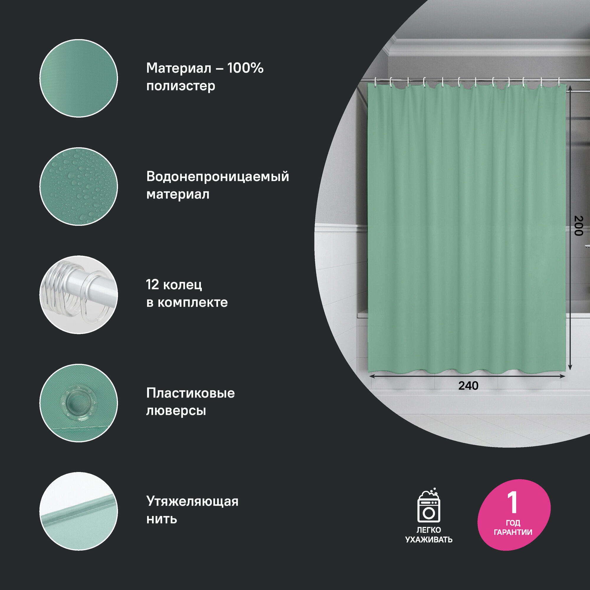 Штора для ванной IDDIS 200x240 см зеленый полиэстер BL05P24i11 информация: