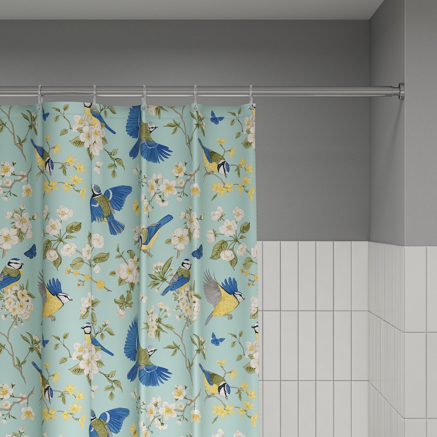 Штора для ванной комнаты и душа IDDIS Base BR01P18i11 180x200 см, тканевая, водонепроницаемая, полиэстер, с кольцами, голубая 1 002 ₽