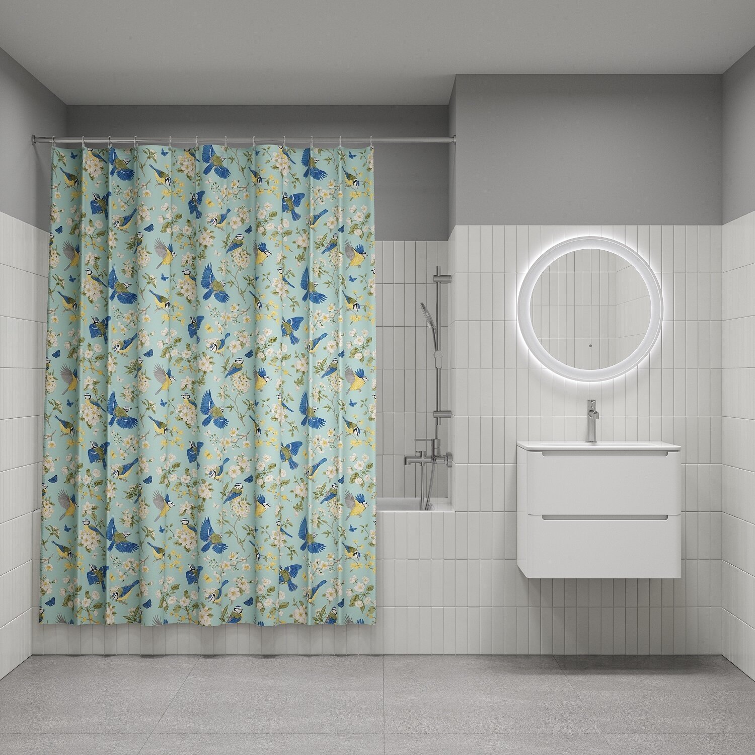 10 цен на Штора для ванной комнаты и душа IDDIS Base BP03P18i11 180x200 см, тканевая, водонепроницаемая, полиэстер, с кольцами