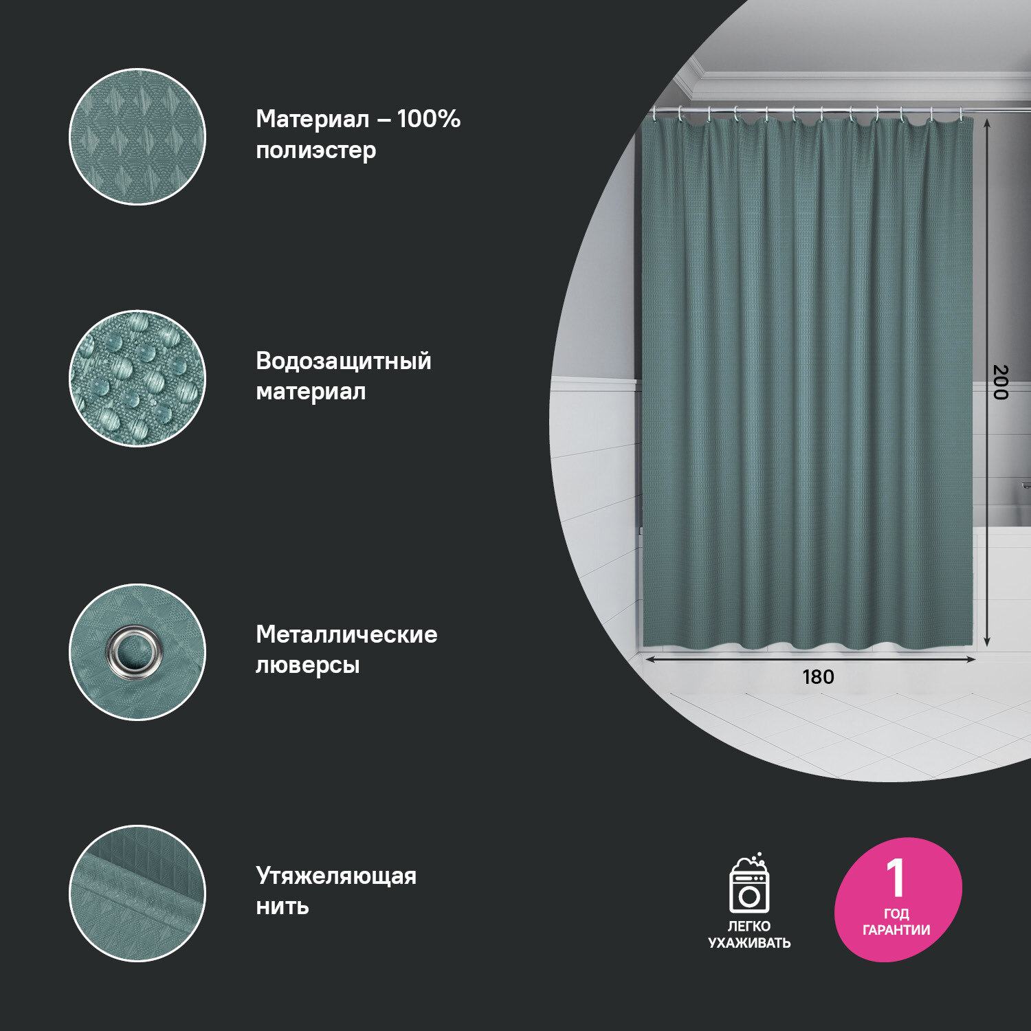 10 цен на Штора для ванной, 200х180 см, Полиэстер, зеленый, IDDIS, DW05P18i11