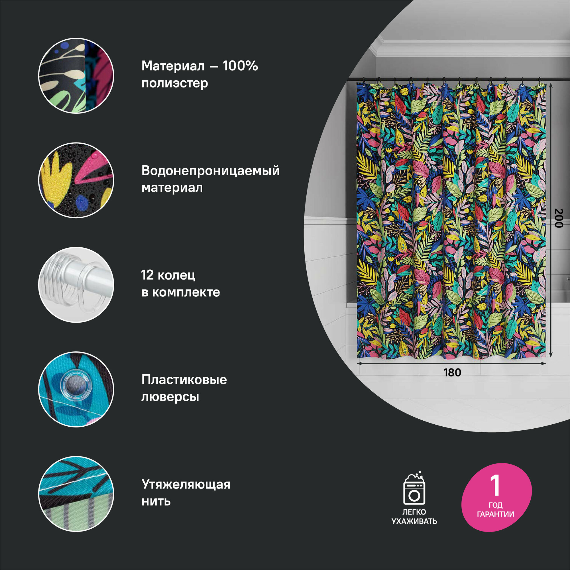 Штора для ванной IDDIS BF03P18i11, 200 x 180 см, полиэстер информация:
