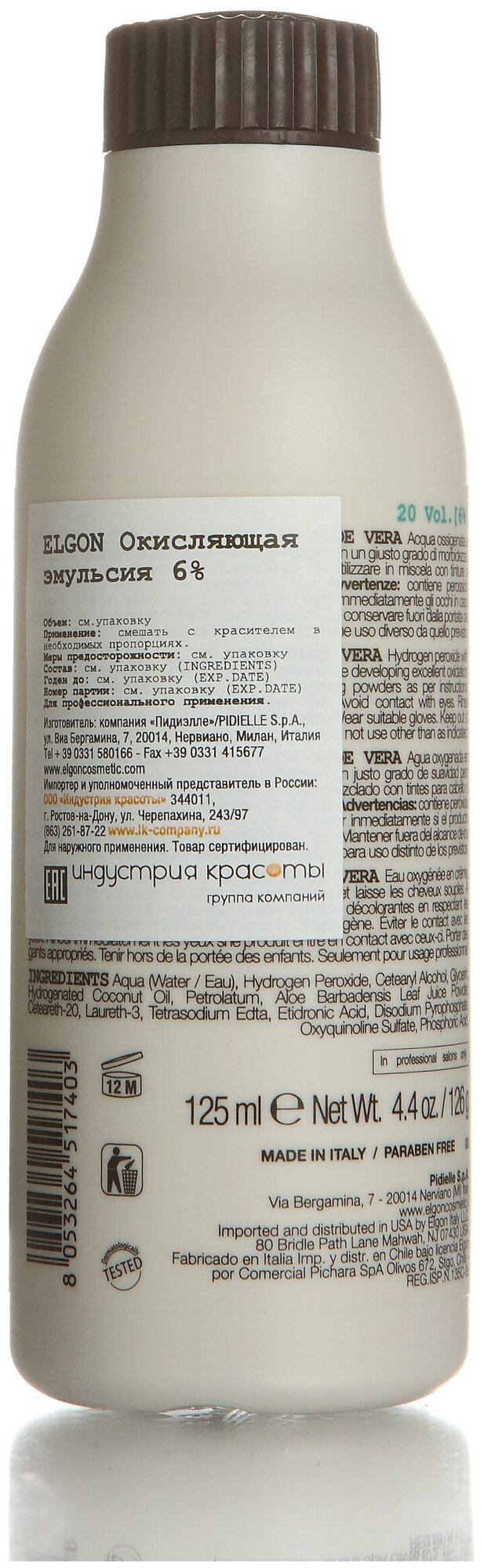 Окисляющая эмульсия с алоэ вера 6% Elgon Oxi Cream, 150 мл информация: