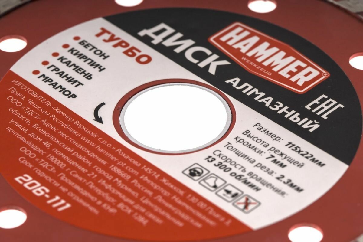 Диск алмазный Hammer Flex 206-111 DB TB Ф115х22мм универсальный информация: