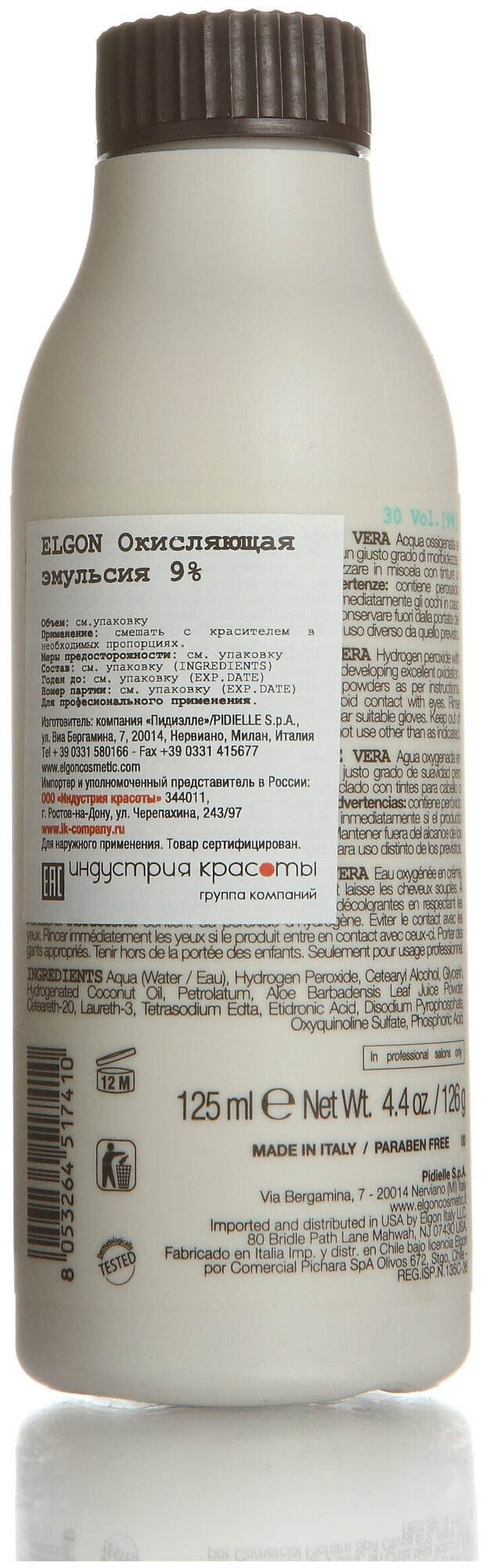 Окисляющая эмульсия с алоэ вера 9% Elgon Oxi Cream, 125 мл информация:
