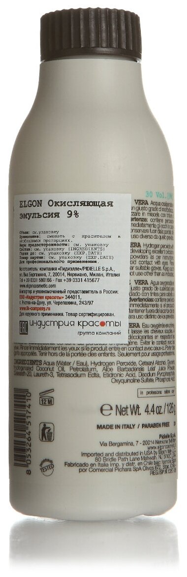 Окисляющая эмульсия с алоэ вера 9% Elgon Oxi Cream, 1000 мл информация: